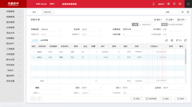 天耀A3.Cloud PRO《进销存管理》:基于互联网环境浏览器方式应用的管理软件系统,系统支持浏览器方式应用和 APP 移动端应用。专属(私有)云服务器部署或 PC 服务器本地部署(需接入互联网), 支持多用户应用。